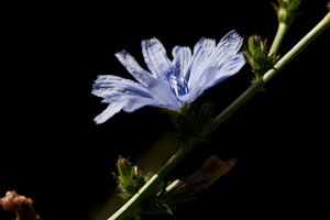 Lateinisch: Centaurea cyanus, wächst am und im Feld, genau wie die Wegwarte. Die beiden kennen sich, leuchten mit ihrer blauen Farbe um die Wette. Stellt euch alle mal vor, die Kornblume ist aufgeregt, ich werde doch tatsächlich Getreideunkraut genannt, pah, so etwas gemeines.
